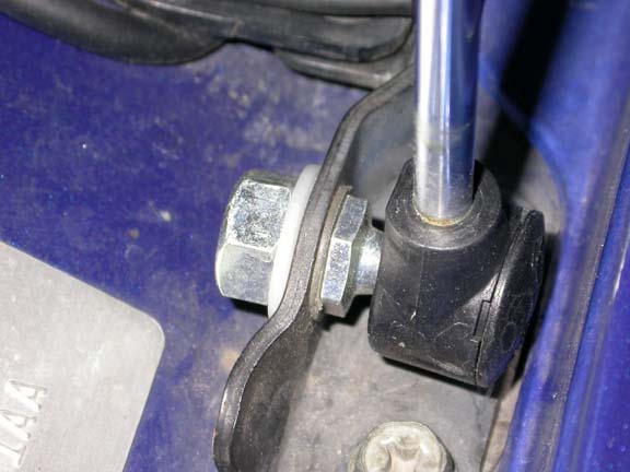 - Install the ball stud into the mounting bracket using the original washer on one side and a nylon washer and nut on the other side.