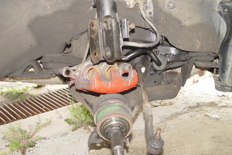 First, locate the sway bar bushing on your front suspension. Note that the hub assy is missing from my car since I already had it off for other reasons.