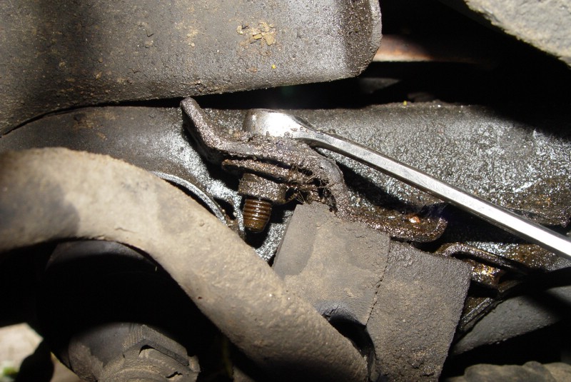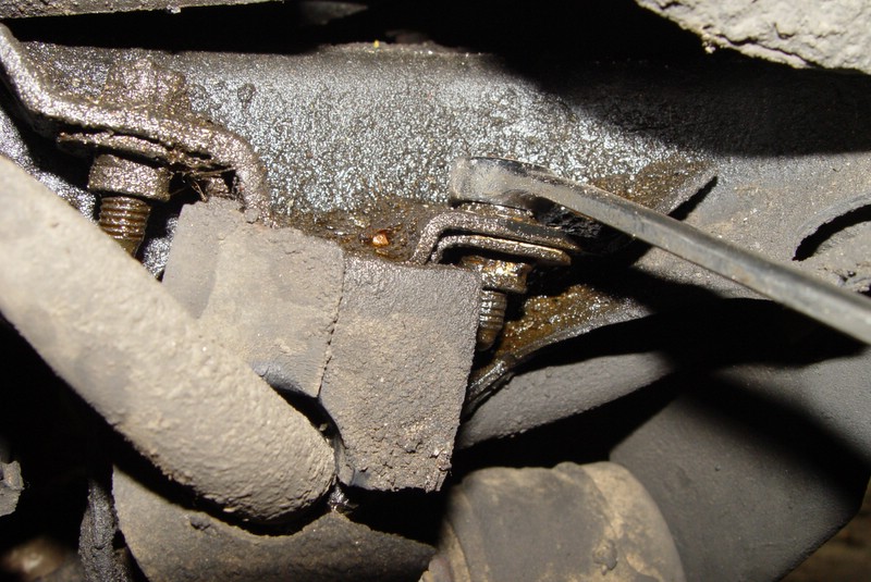 Now remove one of the two bolts holding the bushing retainer bracket in place.